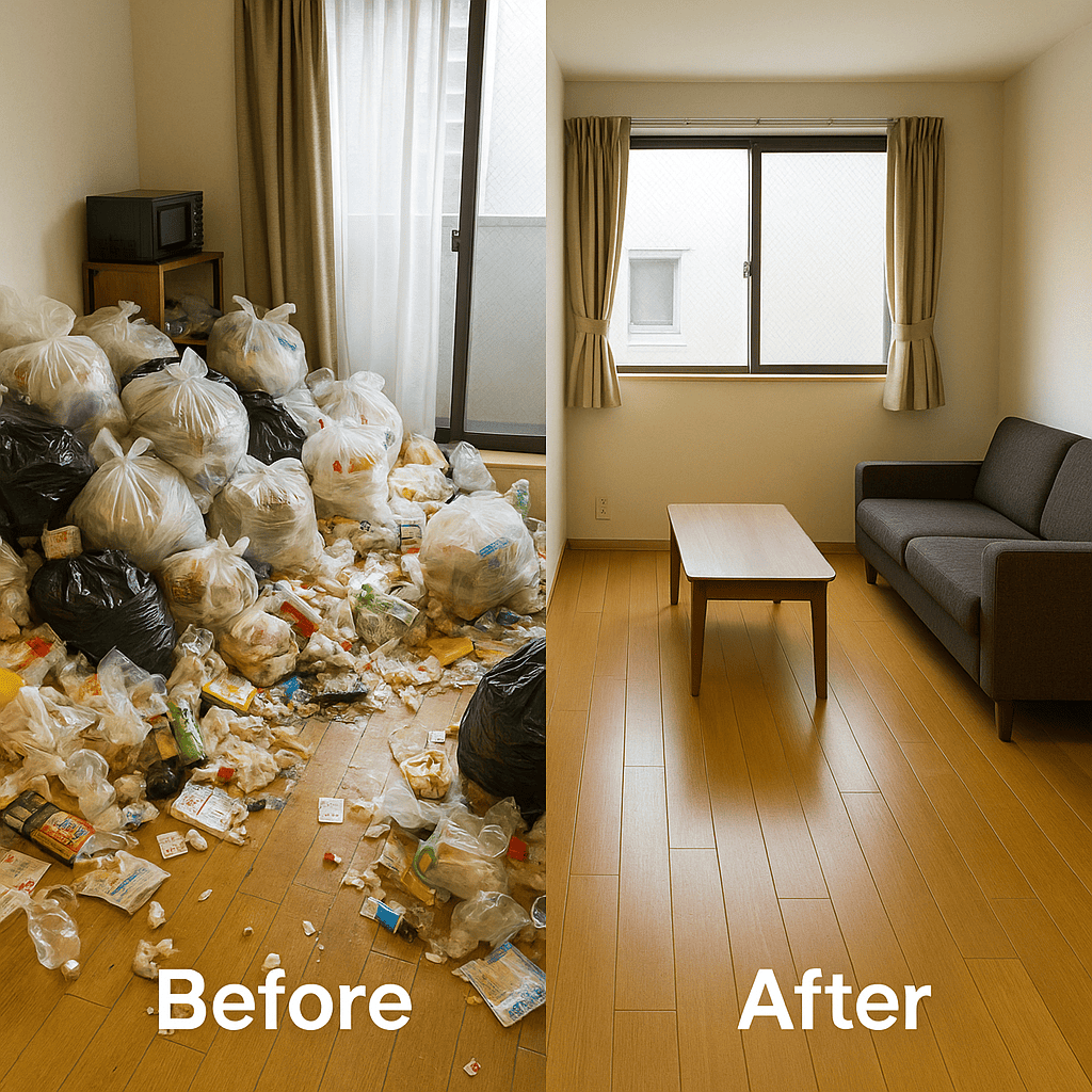 大量の不用品やゴミ屋敷、倉庫・店舗の撤去まで対応。必要に応じてトラックとスタッフを追加し、短時間で片付けます。